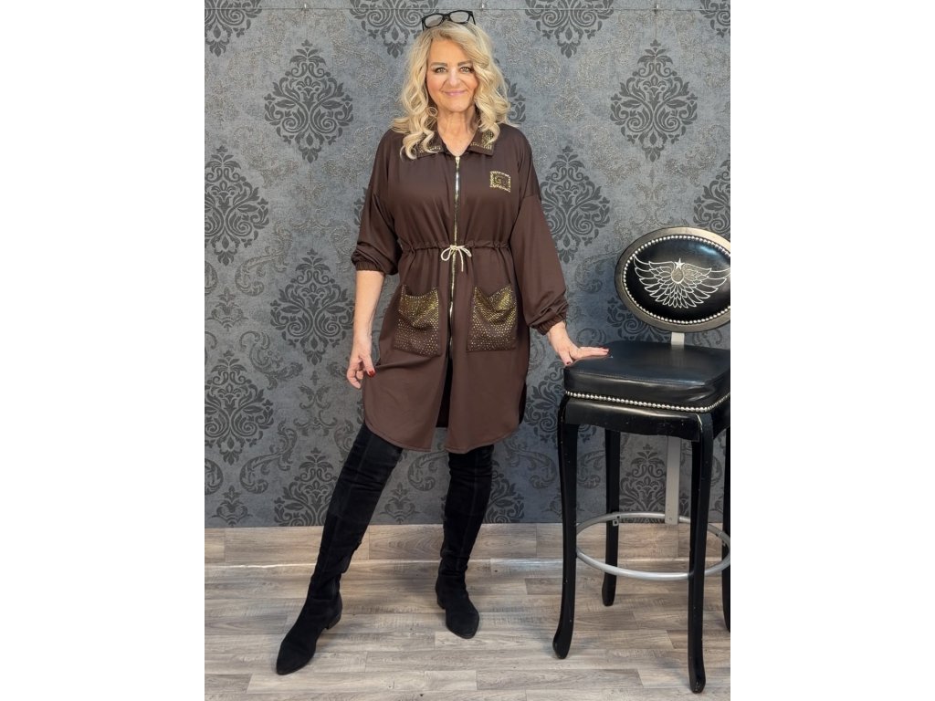 PLUS SIZE OBLEČENÍ KABÁTEK KRASOCHVILKA hnědý vel.2