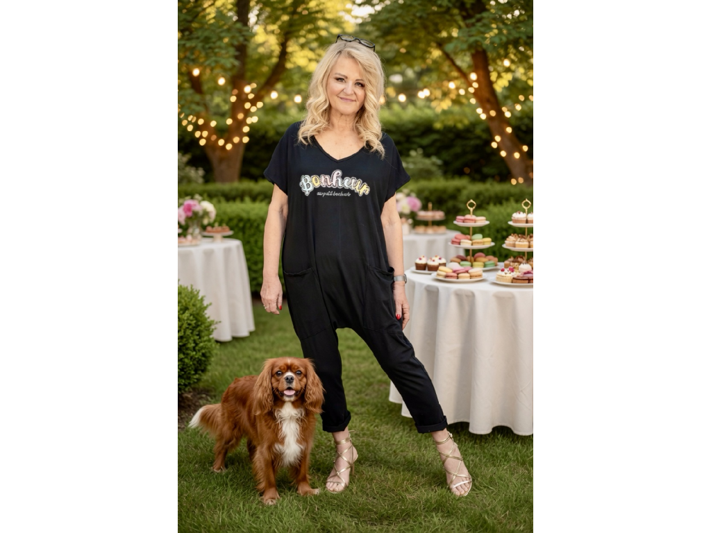 PLUS SIZE OBLEČENÍ OVERAL PĚNKAVA černý