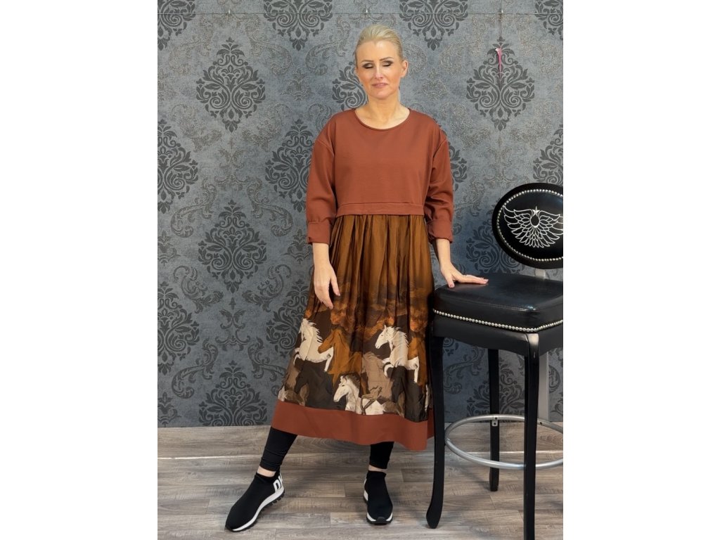 PLUS SIZE 42-60 ŠATY ULA skořice