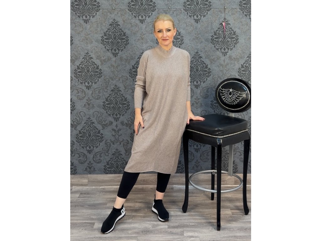 PLUS SIZE OBLEČENÍ SVETROVÉ ŠATY MIA fango